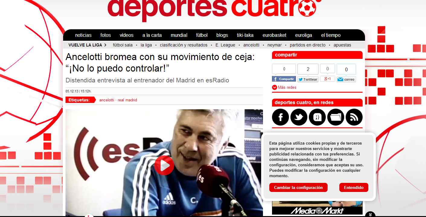 Incluso en Cuatro, otra de las cadenas del Grupo Mediaset, se publicó en la sección 'Deportes Cuatro' el vídeo de la entrevista al técnico madridista.
