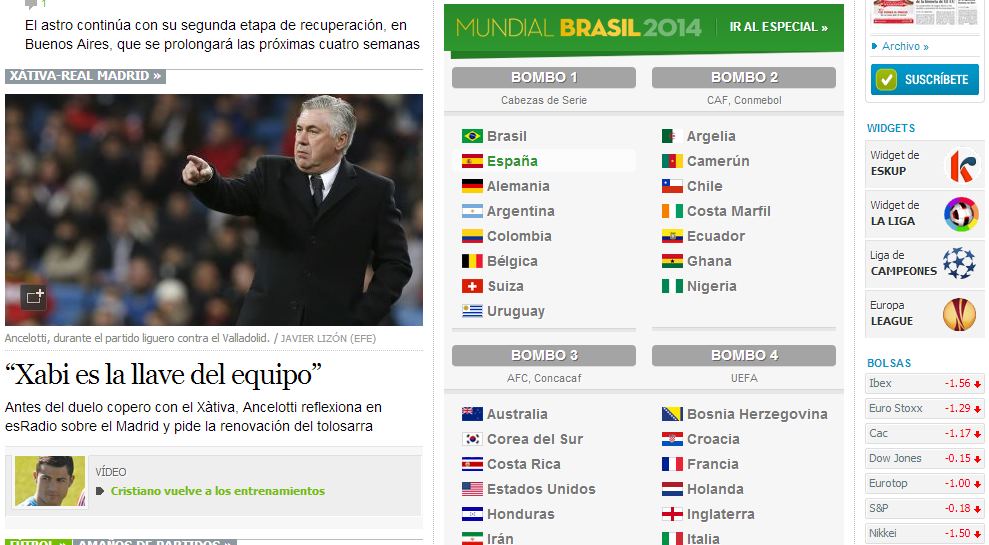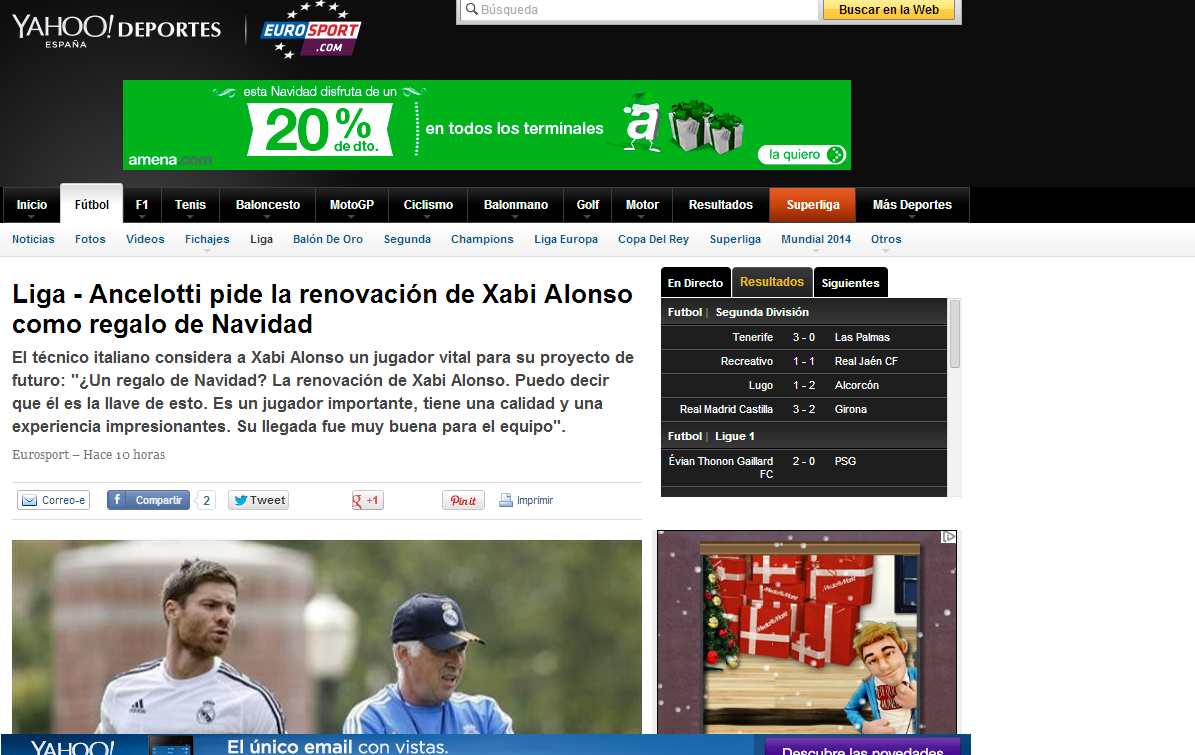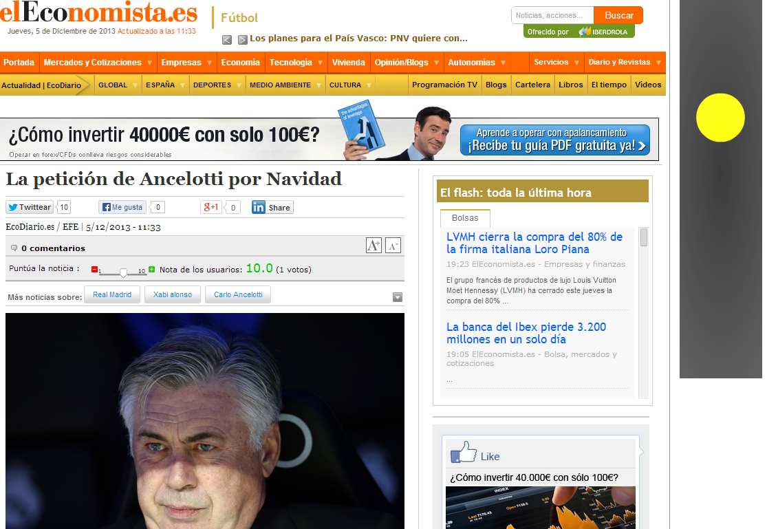 El titular del portal digital de El Economista es un enigmático "La petición de Ancelotti por Navidad", explicando líneas más abajo que se trata de la renovación de Xabi.