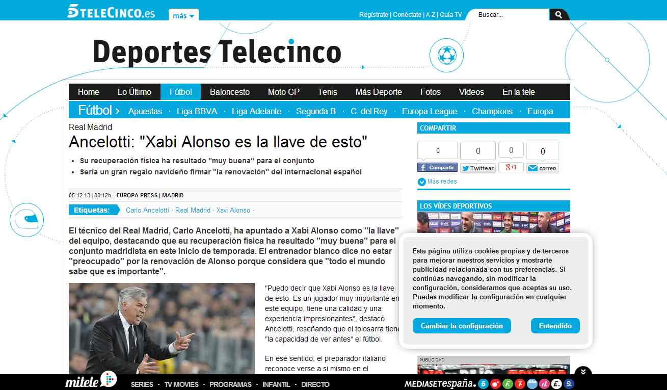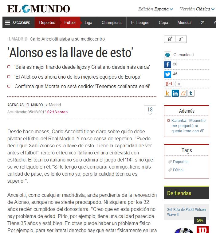Como en la edición de papel, la página web de As también optó por destacar el deseo de Ancelotti para que se renueve a Xabi Alonso.