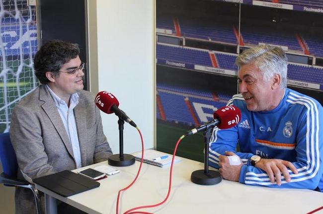 Con la ayuda de Sergio Valentín, redactor que habitualmente cubre la información del Madrid en el grupo de comunicación presidido por Federico Jiménez Losantos, Azpitarte ha preguntado a Ancelotti por los aspectos más destacados de la actualidad del equipo blanco.