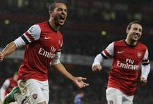 Walcott (i) celebra su gol junto a Cazorla (d). | EFE