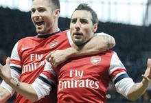 Los jugadores del Arsenal Olivier Giroud (i) y Santi Cazorla (d). | EFE