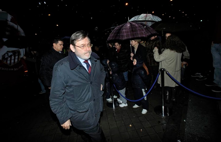 El presidente del Rayo Vallecano, en el momento de entrar en la Basílica Hispano-Americana de la Merced.