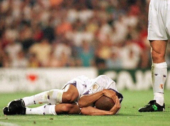 Mecherazo a Roberto Carlos en el Camp Nou (agosto de 1997)