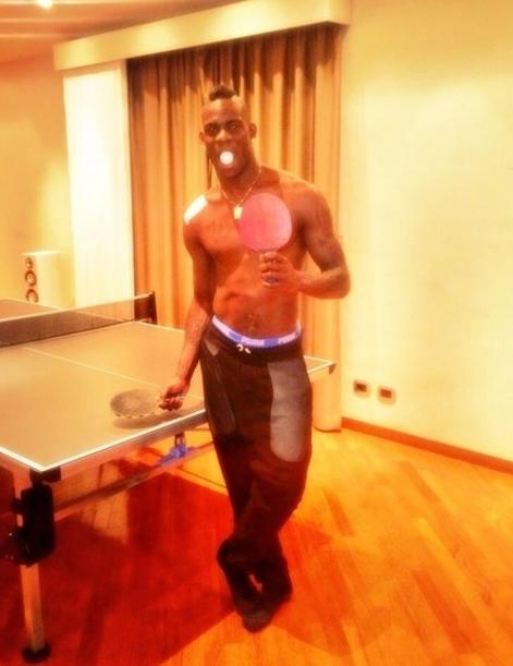 Mario Balotelli vuelve a estar en el ojo del huracán. Esta vez por una foto que ha publicado en su cuenta de Twitter en la que se le ve sujetando una pala de ping-pong, con el torso desnudo, una pelota en la boca y apoyándose sobre una mesa, como si estuviera preparado para jugar a este deporte.