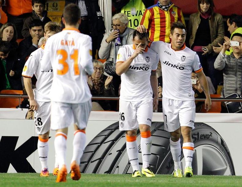 Esta ventaja se tradujo en algunas llegadas al área en acciones individuales, pero sin peligro para Diego Alves, fruto también de la falta de intensidad de los valencianistas, que no estaban muy entonados. Mediado el primer periodo mejoró el conjunto de Juan Antonio Pizzi, pero esa mejoría solo se apreció en el incremento de posesión del balón que servía para desgastar a un rival que cada vez jugaba más con el tiempo en contra.
