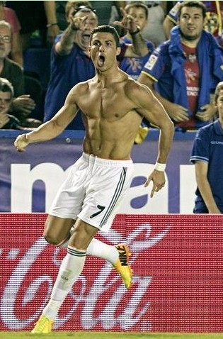 El portugués Cristiano Ronaldo ha dejado a más de uno con la boca abierta con este tipo de celebraciones al marcar un gol, no tanto por lo original del gesto, sino por enseñar los surcos de su abdomen .