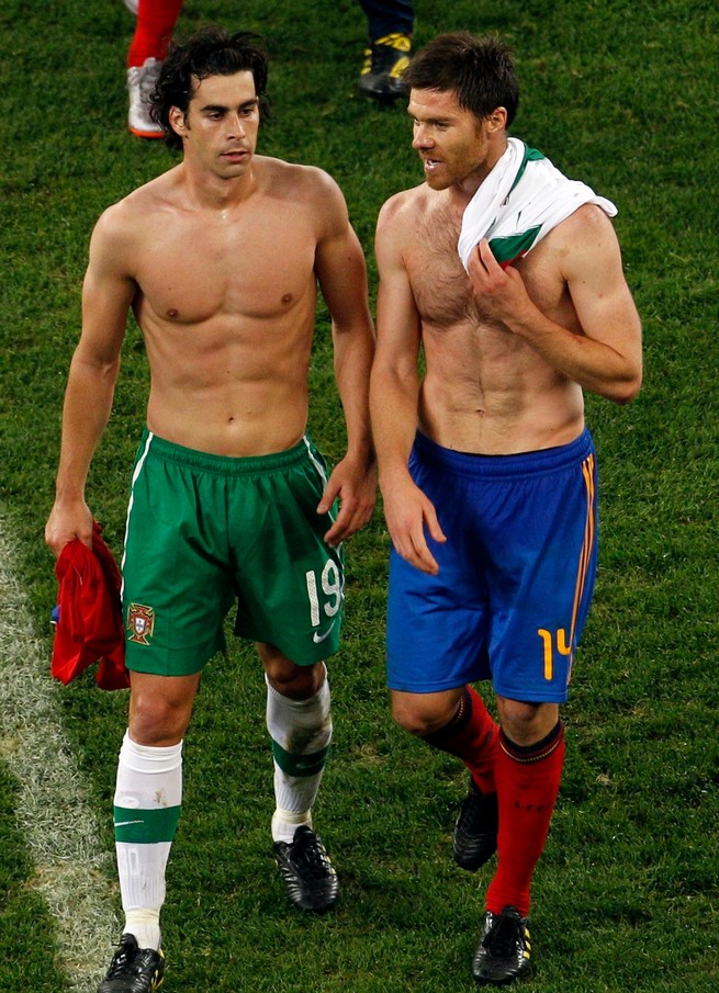El choque entre Portugal y España en el Mundial de Sudáfrica nos dejó esta imagen tan amistosa entre Tiago Mendes y Xabi Alonso. Gracias al intercambio de camisetas que hicieron ambos jugadores, pudimos descubrir qué esconden bajo la elástica.