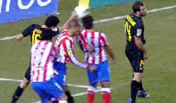 (26/02/2012) Vicente Calderón. Partido de la vigésimo quinta jornada de Liga. En el minuto 89, con 1-2 en el marcador, el árbitro Pérez Lasa se traga un claro penalti a favor del Atlético de Madrid por mano de Busquets dentro del área. Radamel Falcao estalló horas después en Twitter: "La única persona que no vio la mano fue el árbitro, ¿realmente no la vio?". Eladio Paramés, exportavoz de José Mourinho, también utilizó esta red social para cargar contra el jugador culé, asegurando que actuó "como su padre, pero sin guantes".