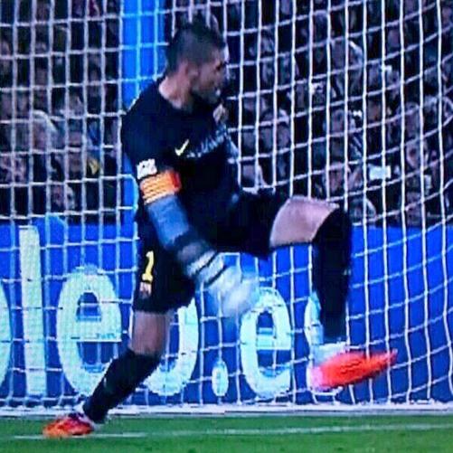 Valdés se lesionó en el minuto 21. El guardameta blocó en dos tiempos un lanzamiento de falta de Orellana y, al pisar el césped antes de atrapar definitivamente el balón, cayó con gestos de dolor, echándose las manos a la rodilla derecha.