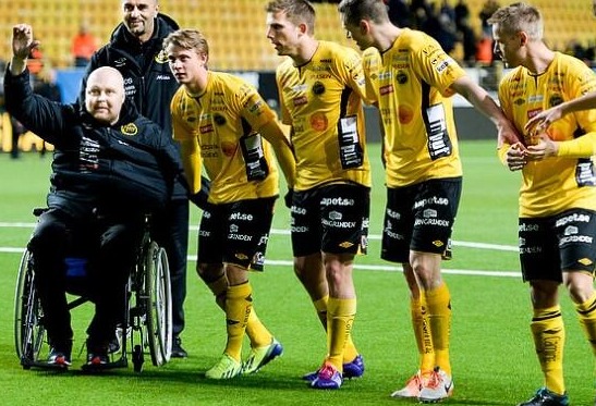 Tras la derrota en la primera jornada a domicilio contra el Atvidaberg, se cayó en el vestuario y se rompió un brazo, por lo que ahora debe usar una silla de ruedas. Así dirigió el pasado viernes a su equipo contra el Hacken en la primera victoria de la temporada (3-1): al acabar el partido, lo llevaron en silla hasta el medio del campo, donde hizo la ola sentado junto a su equipo, con el público local en pie.