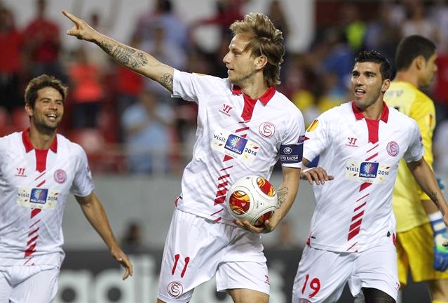Sevilla, 4: Beto; Coke, Nico Pareja, Fazio, Fernando Navarro; M'Bia, Carriço; Reyes (Diogo Figueiras, m.56), Rakitic (Trochowski, m.85), Vitolo; Bacca (Gameiro, m.69)