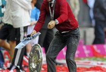 comentario El entrenador celebró bañado en cerveza la liga del Bayern y protagonizó un momento comprometido.