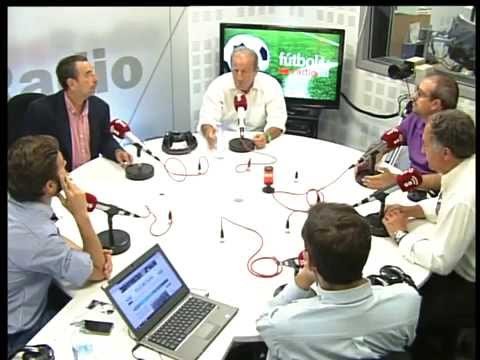 Dieter y Juan Pablo comentan con Isidoro San José, Petón, Dani Blanco y Garci el partido entre el Barça y el Atlético que determinará al campeón.