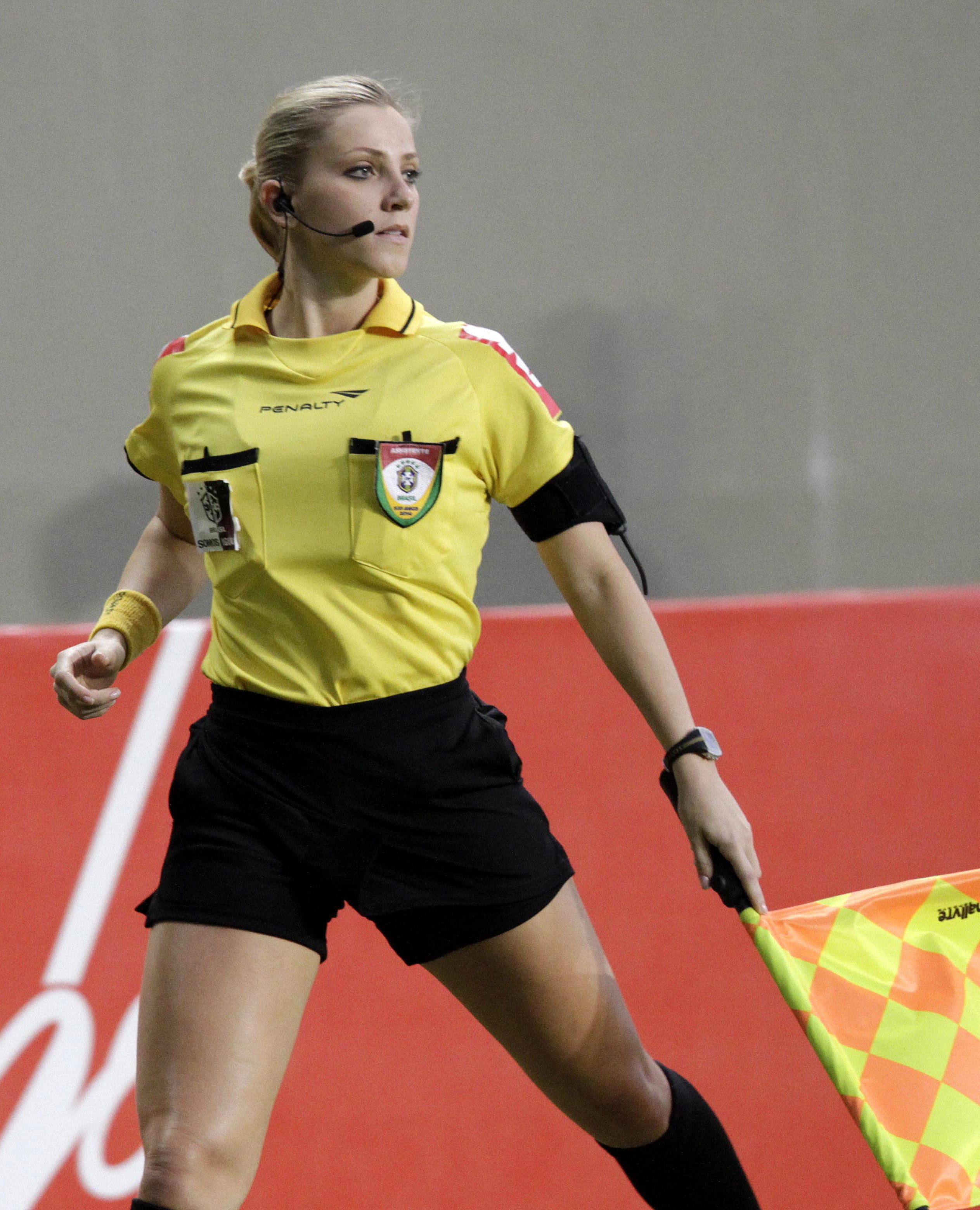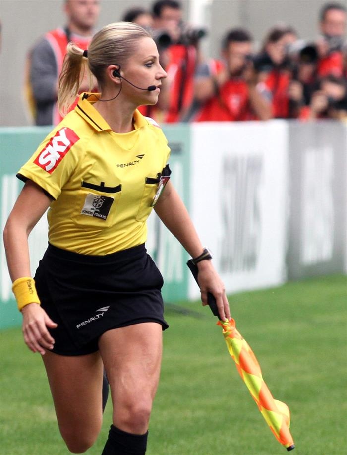 No es un nuevo talento futbolístico, pero se ha convertido en la nueva sensación en Brasil. La jueza de línea Fernanda Colombo acapara portadas en la prensa y ya se ha convertido en uno de los personajes más medíaticos del país.