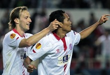 Rakitic y Bacca celebran un gol con el Sevilla. | Archivo