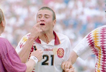 Luis Enrique, sangrando, protesta al árbitro por el penalti no señalado. España volvía a casa en cuartos.