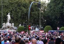 Miles de aficionados colchoneros acudieron a la fuente madrileña para celebrar el título de Liga.