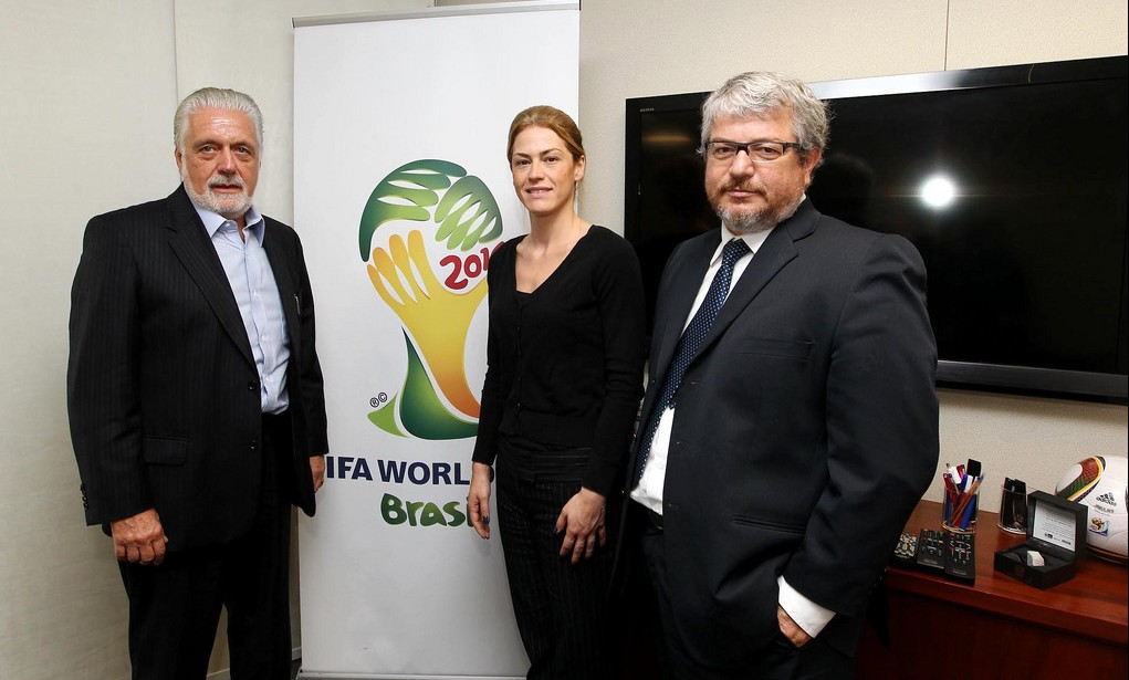 Joana Havelange, junto a Ricardo Trade, miembro del comité organizador del Mundial, y Jaques Wagner, gobernador de Bahía.