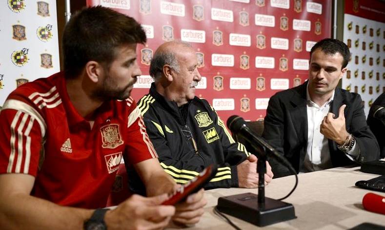 Respecto al once que podría alinear el próximo 13 de junio, en el debut ante Holanda en Salvador de Bahía, el seleccionador dice que "tenemos nueve o diez jugadores fijos" y que "hay un par de dudas", aunque lo ve "lógico al tener una plantilla tan amplia".