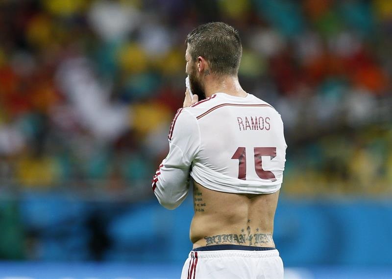 El capitán de España se tapa la cara después de cometer un grave error que supuso el cuarto gol de Holanda.