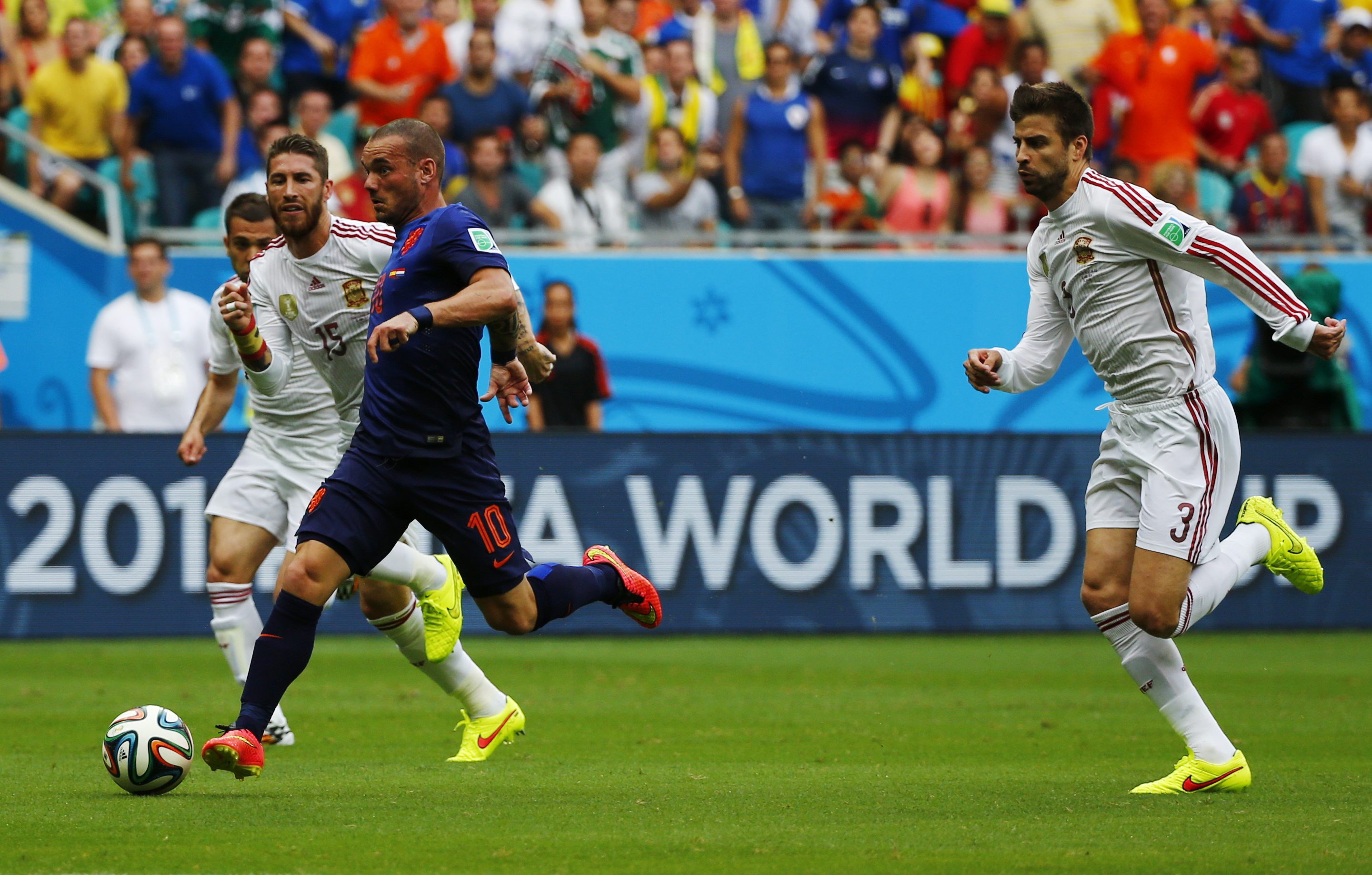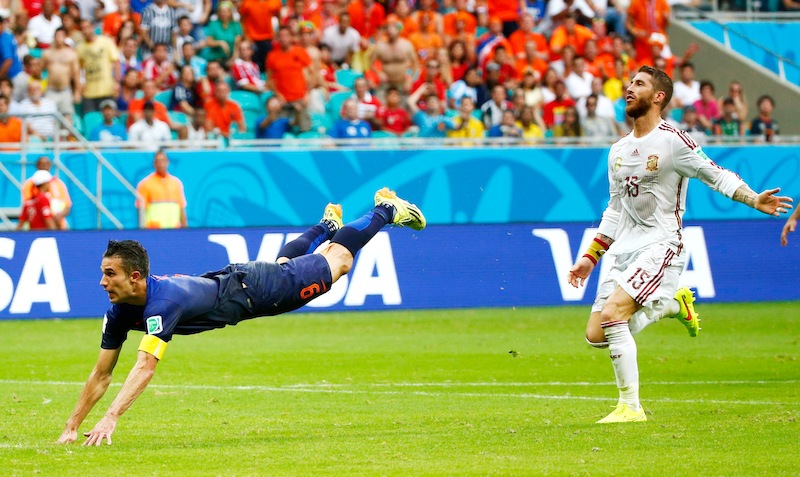 Van Persie remató de cabeza tras ganarle la posición a Sergio Ramos para batir a Casillas, firmando así el 1-1 en el Arena Fonte Nova.