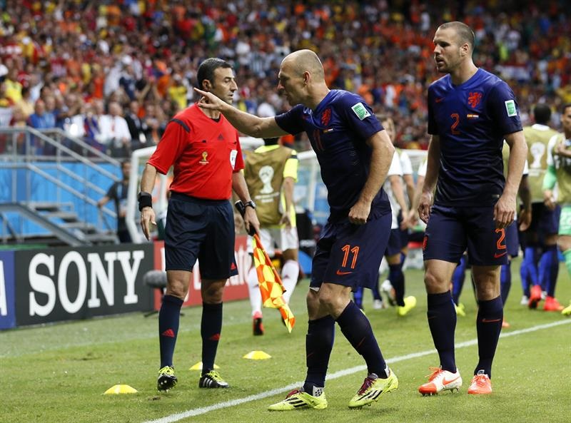 Ron Vlaar, a la derecha de la imagen, es el imponente defensa de Holanda. El jugador del Aston Villa mide 1,89 metros.