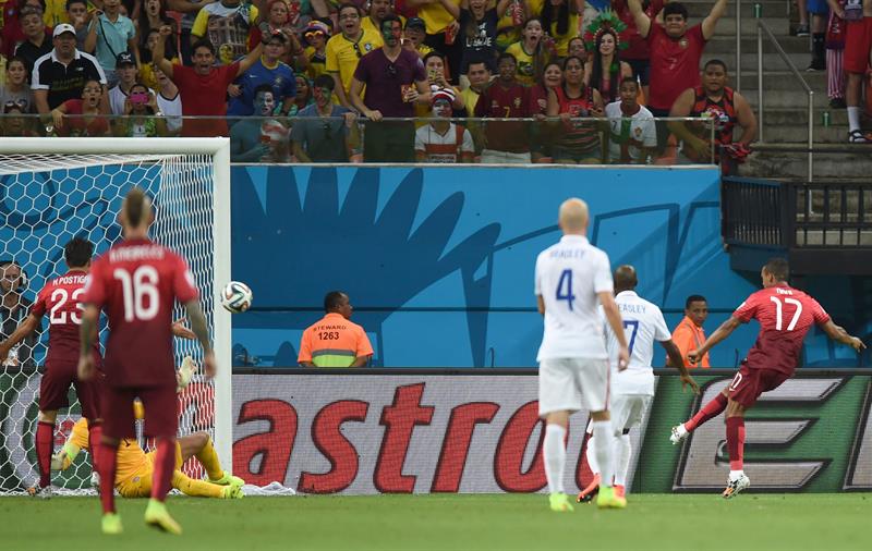 Salió Portugal al Arena Amazonia de Manaos con la clara predisposición de ponerse el partido de cara, para nadar a favor de corriente, conscientes de que verse por detrás en el marcador podría suponer una pesadísima losa para su moral tras el 4-0 ante Alemania en el debut. Y su puesta en escena tan valiente tuvo recompensa en apenas cinco minutos, cuando Nani aprovechó un horrible despeje del central Cameron para fusilar a un Howard que se sabía batido cuando se venció al suelo, dejando todo el ángulo superior de la portería al centrocampista del Manchester United, cuyo certero disparo multiplicaba por mil las opciones de los de Paulo Bento en la competición.