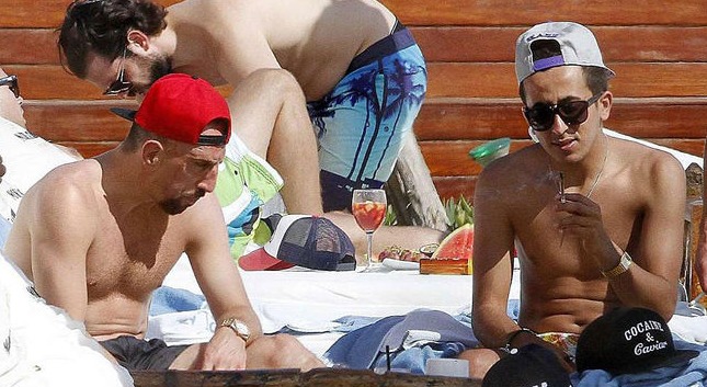 El diario Bild publica este martes unas imágenes en las que Franck Ribéry aparece fumando un cigarrillo muy sospechoso en Ibiza, donde pasa sus vacaciones.