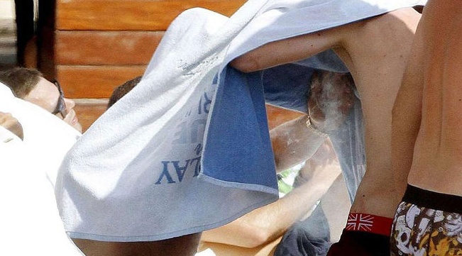 En la otra, Ribéry se tapa con una toalla mientras le da unas caladas al cigarrillo, tratando de ocultarse de las miradas indiscretas.