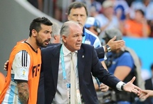 Alejandro Sabella da instrucciones a Lavezzi durante el partido de cuartos contra Bélgica. | EFE