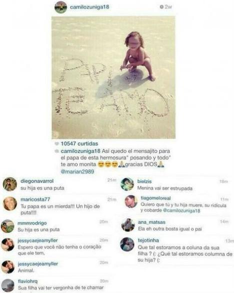 Otro de los objetivos de la ira de algunos aficionados ha sido la hija pequeña del futbolista. Zúñiga colgó una foto con la pequeña en su cuenta de Instagram y la imagen se llenó de comentarios con insultos hacia la niña, por lo que optó por retirarla.