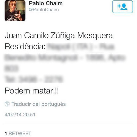 El lateral colombiano Camilo Zúñiga está recibiendo amenazas de muerte e insultos desde las redes sociales. De nada han servido sus disculpas públicas por lesionar a Neymar durante el partido de cuartos de final entre Colombia y Brasil. Algunos aficionados han aprovechado las redes sociales para proferir insultos y comentarios amenazantes.