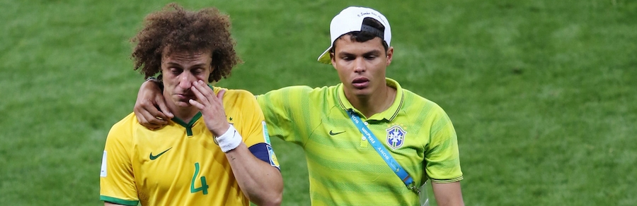 Los jugadores de la selección brasileños, abatidos tras encajar uno de los siete goles.