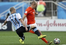 Mascherano tapa el remate a Arjen Robben.