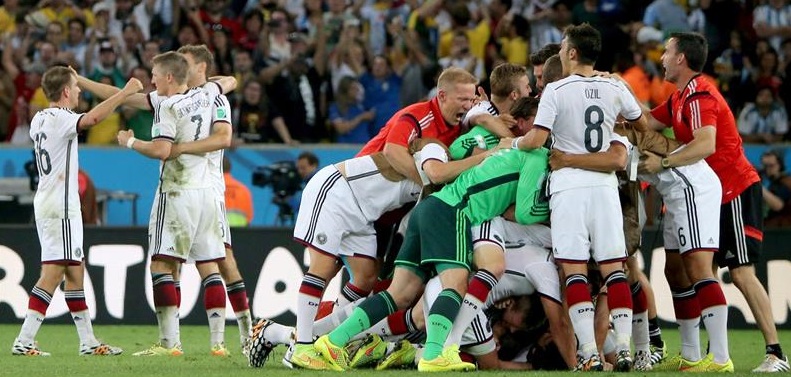 Así celebraban Müller, Schürrle, Höwedes y Götze el gol de Alemania, anotado por este último en el minuto 113 de partido.