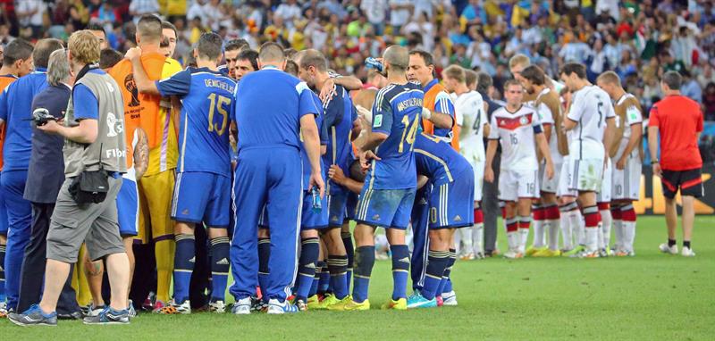 Tras el 0-0 de los 90 minutos, las dos selecciones se reúnen para recibir instrucciones de Löw y de Sabella para afrontar la prórroga.