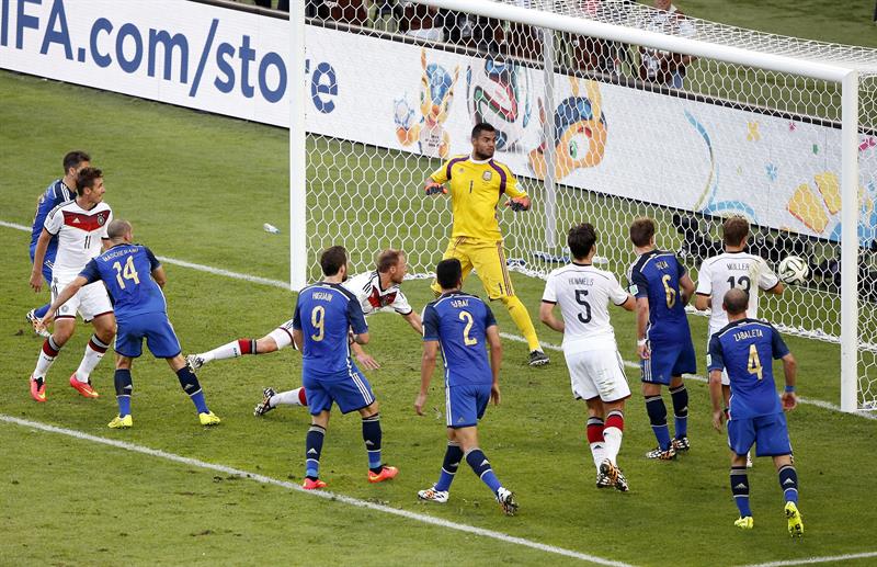 La más clara de Alemania la tuvo el defensa Höwedes al rematar de cabeza un saque de esquina. Su cabezazo se estrelló contra el palo, y en el rechace, Müller, en fuera de juego, remató pero paró Romero, el guardameta argentino.