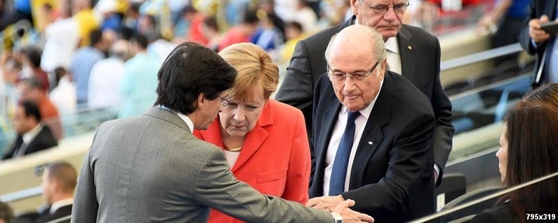 La canciller alemana Angela Merkel, llegando al palco de Maracaná, acompañada por el presidente de la FIFA, el suizo Joseph Blatter. Así estaba representado Alemania en la final del Mundial.