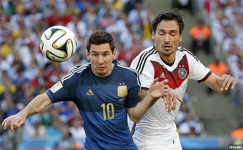 Todas las miradas de la final han estado puestas en el 10 argentino. Aquí, intenta marcharse de Hummels, central alemán, en un balón dividido.