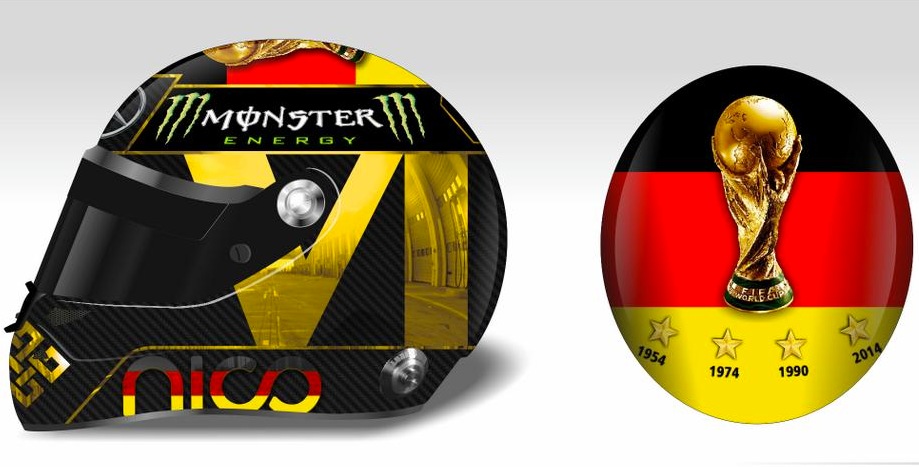 Rosberg, que pilota para una marca -Mercedes- que también patrocina a la Federación Alemana de Fútbol (DFB), habían colgado en su perfil de Twitter una foto con el diseño de su casco, en cuya parte superior estaría dibujado la copa Jules Rimet y las cuatro estrellas de campeones que tiene la Mannschaft.