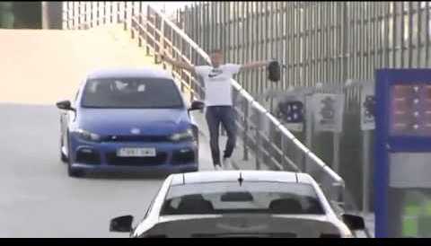 El jugador del FC Barcelona Gerard Deulofeu bromeó con su compañero Jordi Masip en el parking de la Ciutat Esportiva al imitar los gestos de Cristiano Ronaldo.