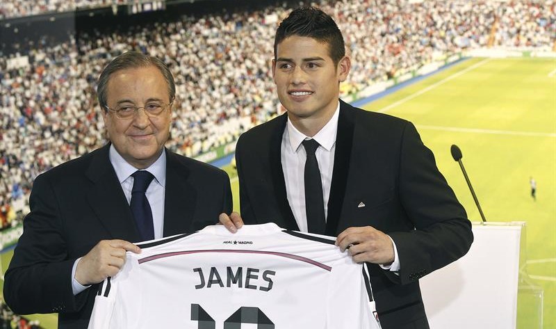 El presidente de la entidad blanca ha definido al jugador como "uno de esos hombres que seducen a los amantes del fútbol de calidad". Florentino Pérez ha destacado el papel de James en el Mundial y no ha dudado en darle un consejo: "Para quien viste esta camiseta, la palabra rendirse no existe. El Bernabéu es ya tu Bernabéu. Bienvenido a casa".