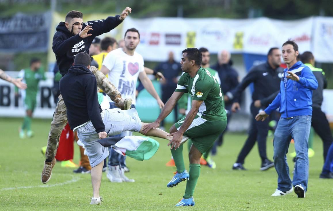 Por razones de seguridad, el árbitro decidió que no se reanudase el encuentro tras los incidentes, en los que tuvieron que intervenir la policía local y las fuerzas de orden del estadio.