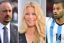 Rafa Benítez, Claudia Schiffer y Javier Mascherano, una extraña combinación.