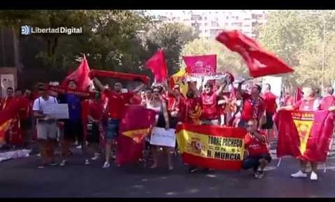 Aficionados del Real Murcia se manifiestan en Madrid por el descenso de su equipo