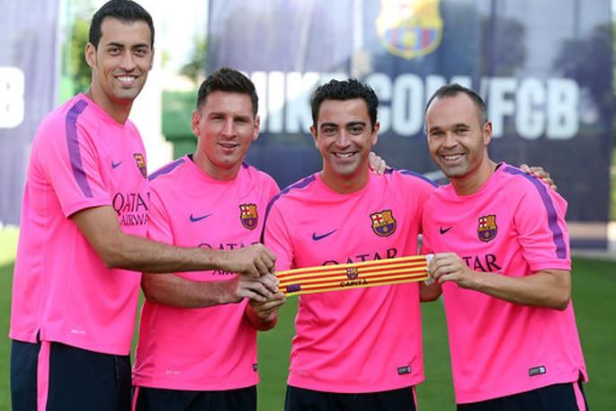 Andrés Iniesta, tercer capitán el año pasado, pasa a ocupar la segunda capitanía, que ostentaba el meta Víctor Valdés, ahora sin equipo, y acceden por primera vez al estatus de capitanes Messi y Busquets.