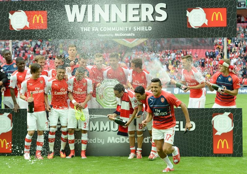 Ambos conjuntos levantaron así el telón de la temporada con un choque que enfrenta una semana antes del comienzo del campeonato nacional al campeón de liga (City) y al de Copa (Arsenal). El internacional español abrió a los 21 minutos la cuenta del conjunto que dirige el francés Arsene Wenger y el galés Aaron Ramsey aumentó la ventaja al filo del descanso, mientras que Olivier Giroud sentenció pasada la hora de juego.