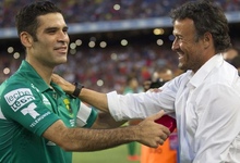 Rafa Márquez saluda a Luis Enrique en los prolegómenos del partido. | EFE