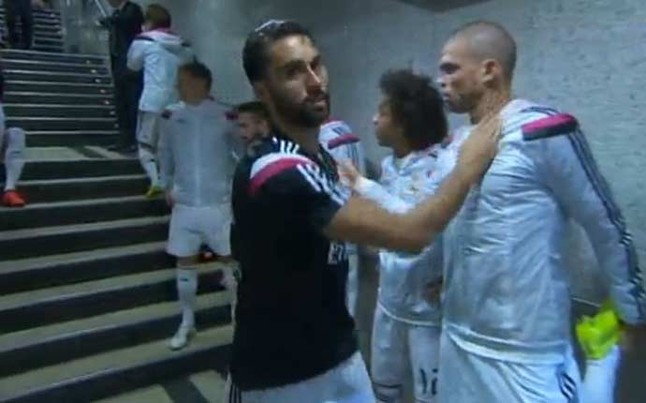 Minutos antes del partido, el lateral madridista, que partía como suplente, aprovechó para dar ánimos a sus compañeros en el túnel de vestuarios. Captado por las cámaras, Arbeloa saludó y abrazó a todos sus compañeros. En las imágenes se ve cómo saluda a Carvajal, Kroos, Bale, Marcelo y Pepe. El último de la fila era Casillas con el que pareció intercambiar un frío y tenso saludo antes de salir al campo, que rápidamente se extendió por las redes sociales.